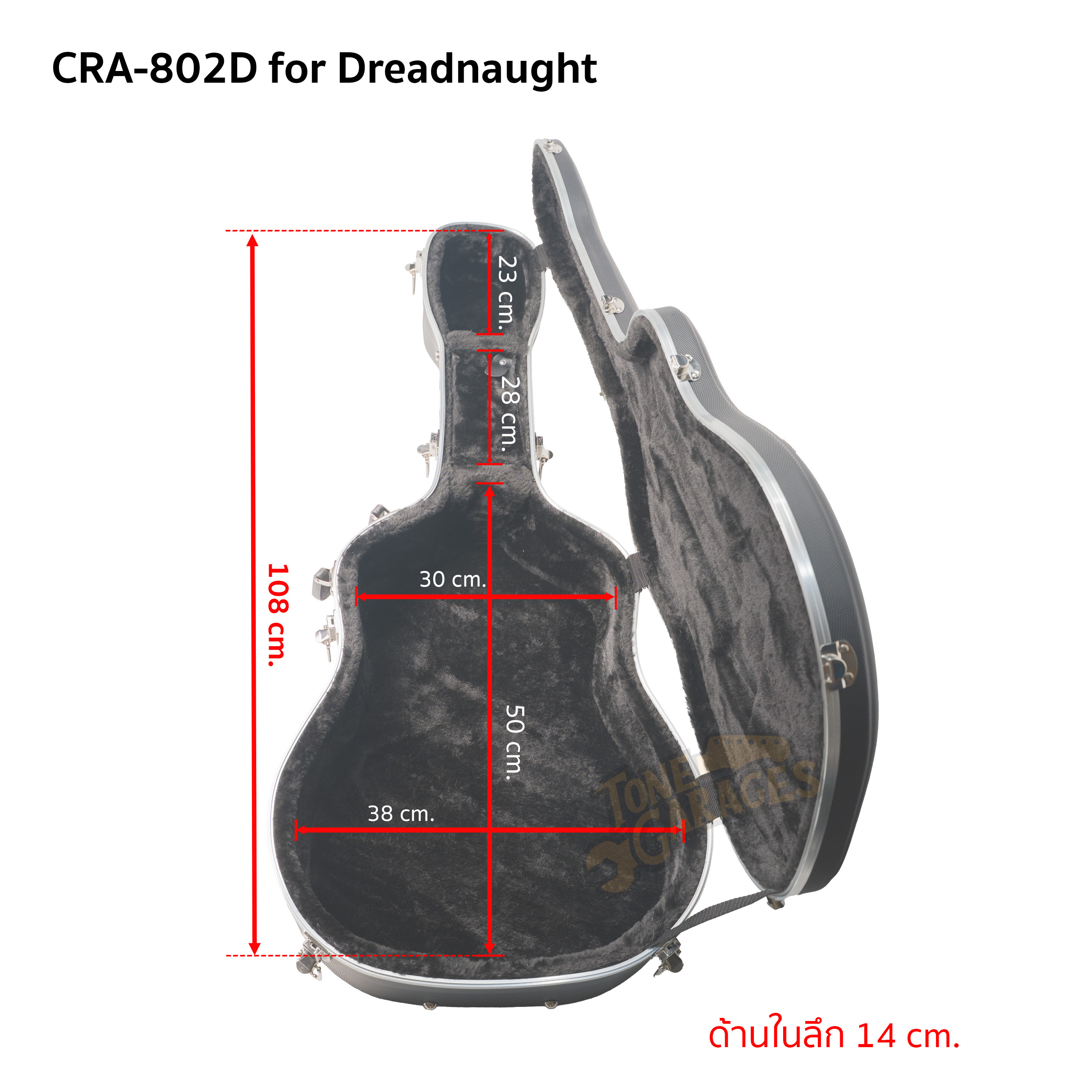 CRA-802 สำหรับกีต้าร์โปร่ง ด้านนอกทำจากวัสดุ ABS สีดำ ขึ้นรูปแข็ง
